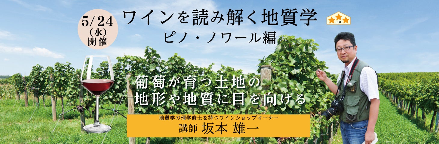ワインエナジー株式会社が運営するヴィノテラスが、【ワインを読み解く地質学 ピノ・ノワール編】を開催。葡萄が育つ土地の地形や地質に目を向ける、講師の坂本雄一氏が、地質学とワインの繋がり方を徹底解説!