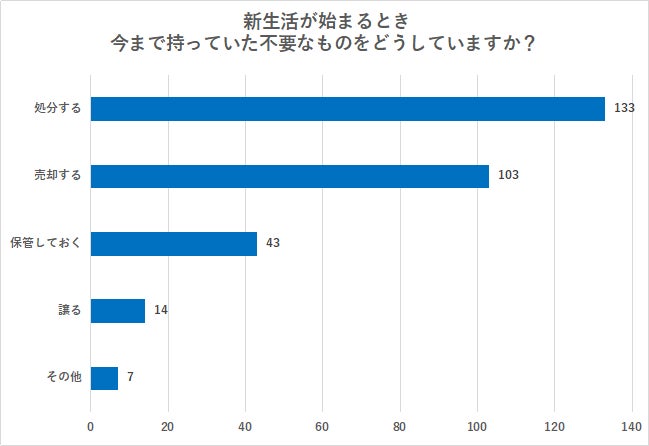 「新生活が始まるとき今まで持っていた不要なものをどうしていますか? 」というアンケートに対して、「処分する」と回答した方が最も多い結果となりました。