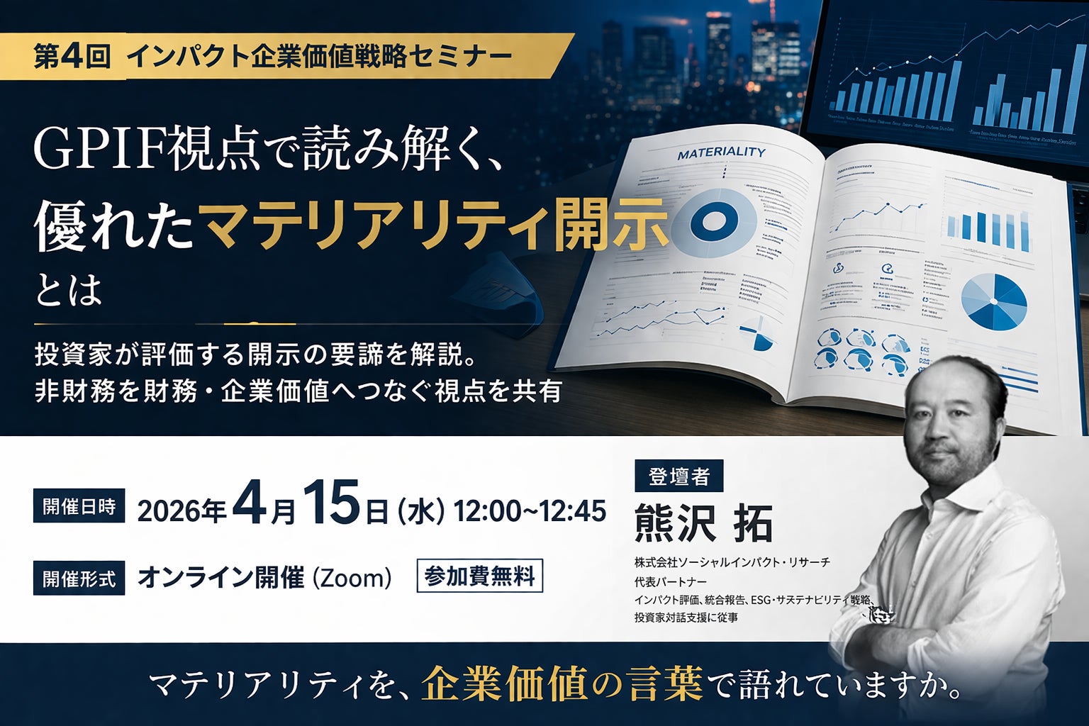 GPIFが評価する“優れたマテリアリティ開示”を解説、第4回インパクト企業価値戦略セミナーを4月15日に開催