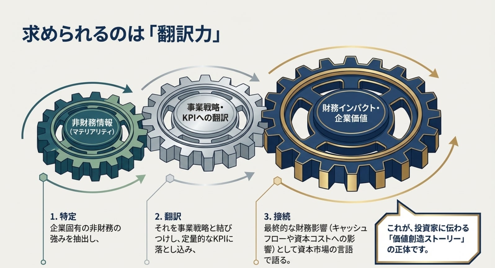 2026年3月、GPIFは国内株式運用機関が選ぶ「マテリアリティの観点から優れたサステナビリティ開示」を公表し、投資家が高く評価する開示の方向性を示しました。そこでは、単なるESG情報の網羅ではなく、企業固有の重要課題が、事業戦略、KPI、財務影響、価値創造ストーリーへと接続されているかが重要なポイントとなっています。