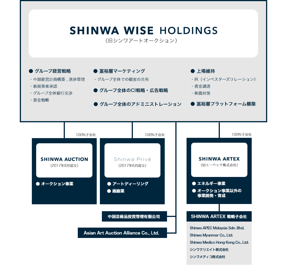 目的:(事業内容):アート・高額品の流通にかかる事業及び文化関連事業の企業集団を擁する持株会社