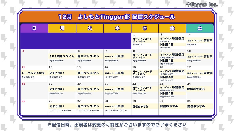 期間中、『よしもとfingger部』の配信内で『fingger BINGO Live』を配信。