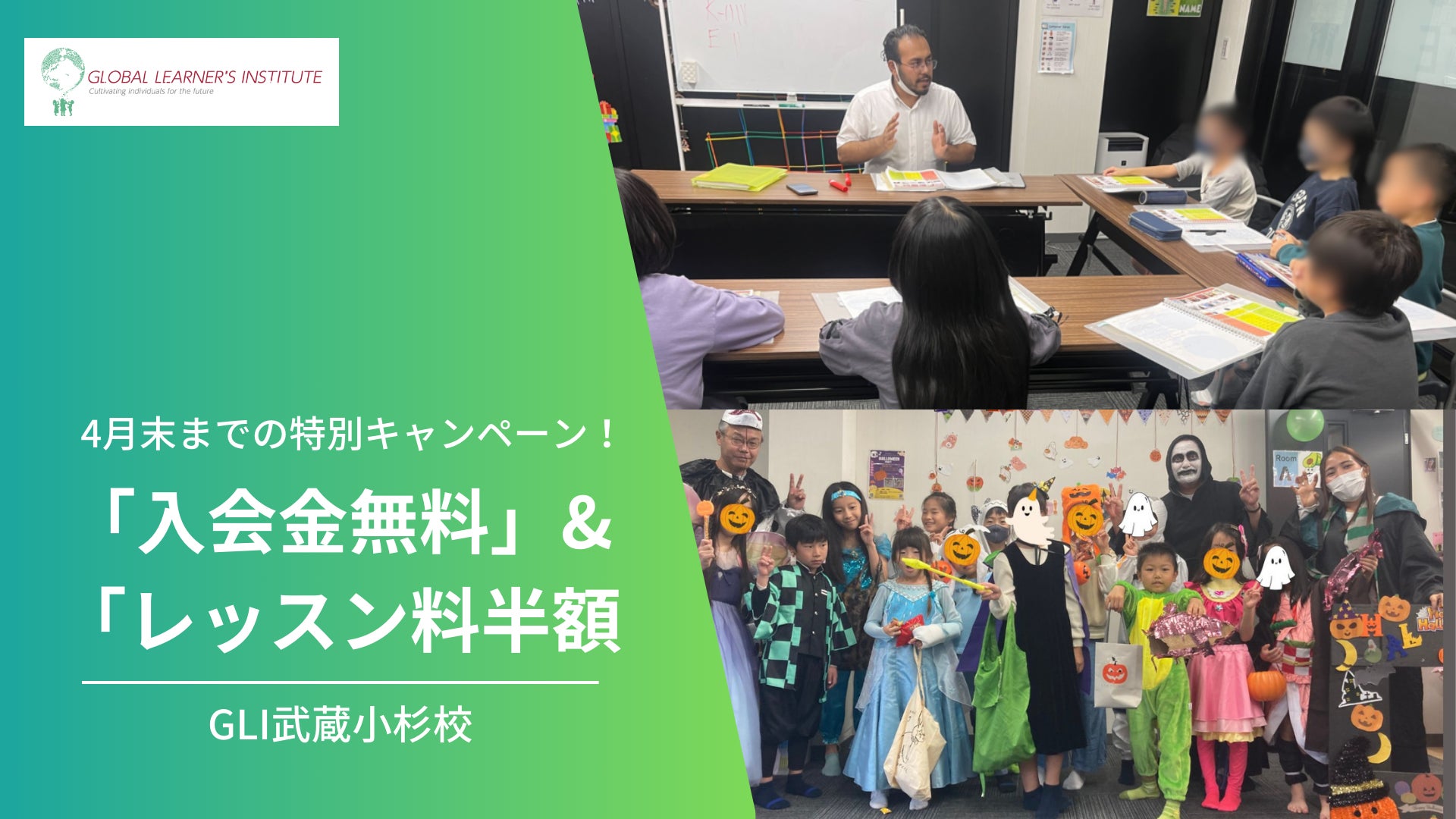 【4月末までの特別キャンペーン!】「入会金無料」&「レッスン料半額」GLI武蔵小杉校キャンペーンのお知らせ