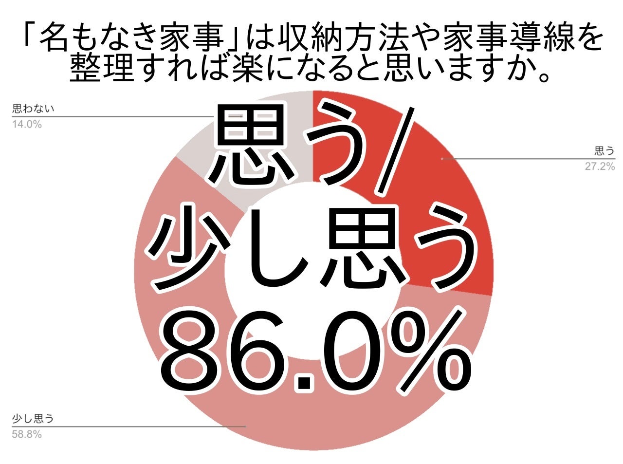 そこでアンケートでは、「名もなき家事」は収納方法や家事導線を整理すれば楽になると思うか尋ねました。