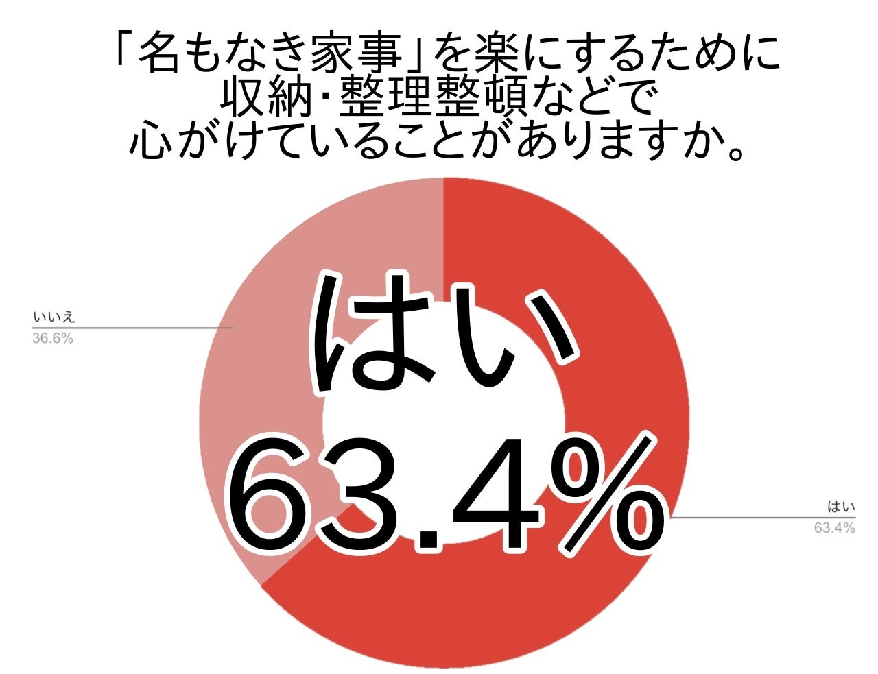 アンケートでは、「名もなき家事」を楽にするために収納・整理整頓などで心がけていることがあるか尋ねました。