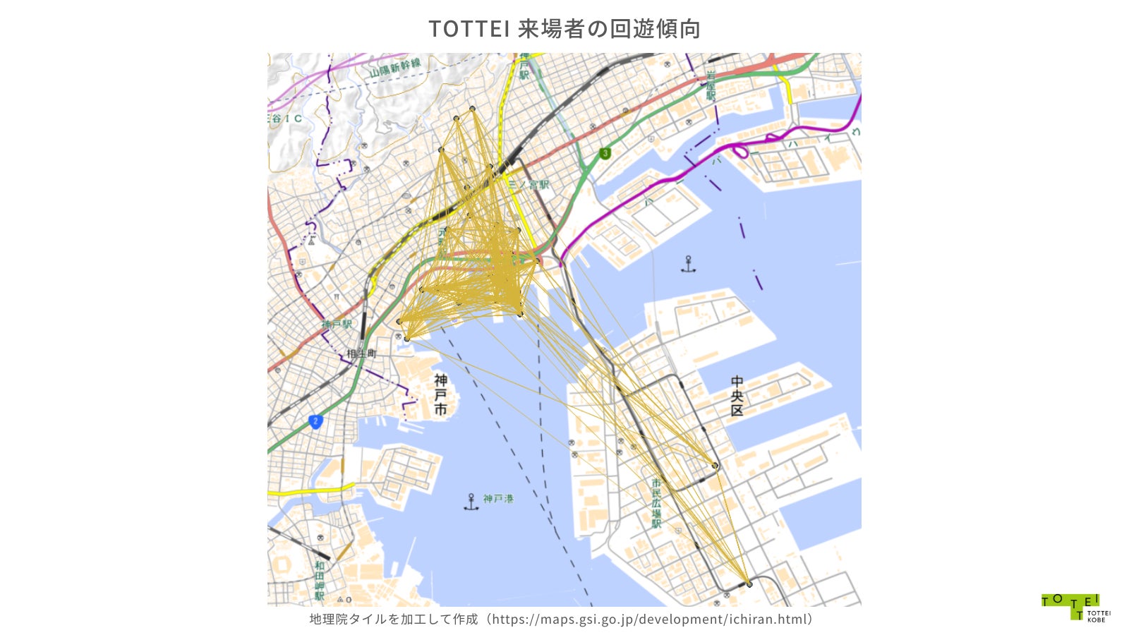 今後、TOTTEIに来場される方々に神戸市内の回遊を促すようなクーポンを提供するなど、イベント種別と購買傾向の掛け合わせをしながら各種イベントによる回遊性向上・滞在時間の長期化を目指し、TOTTEIからまちの中へ染み出していくようなまち全体のマーケティング活動にも注力して参ります。