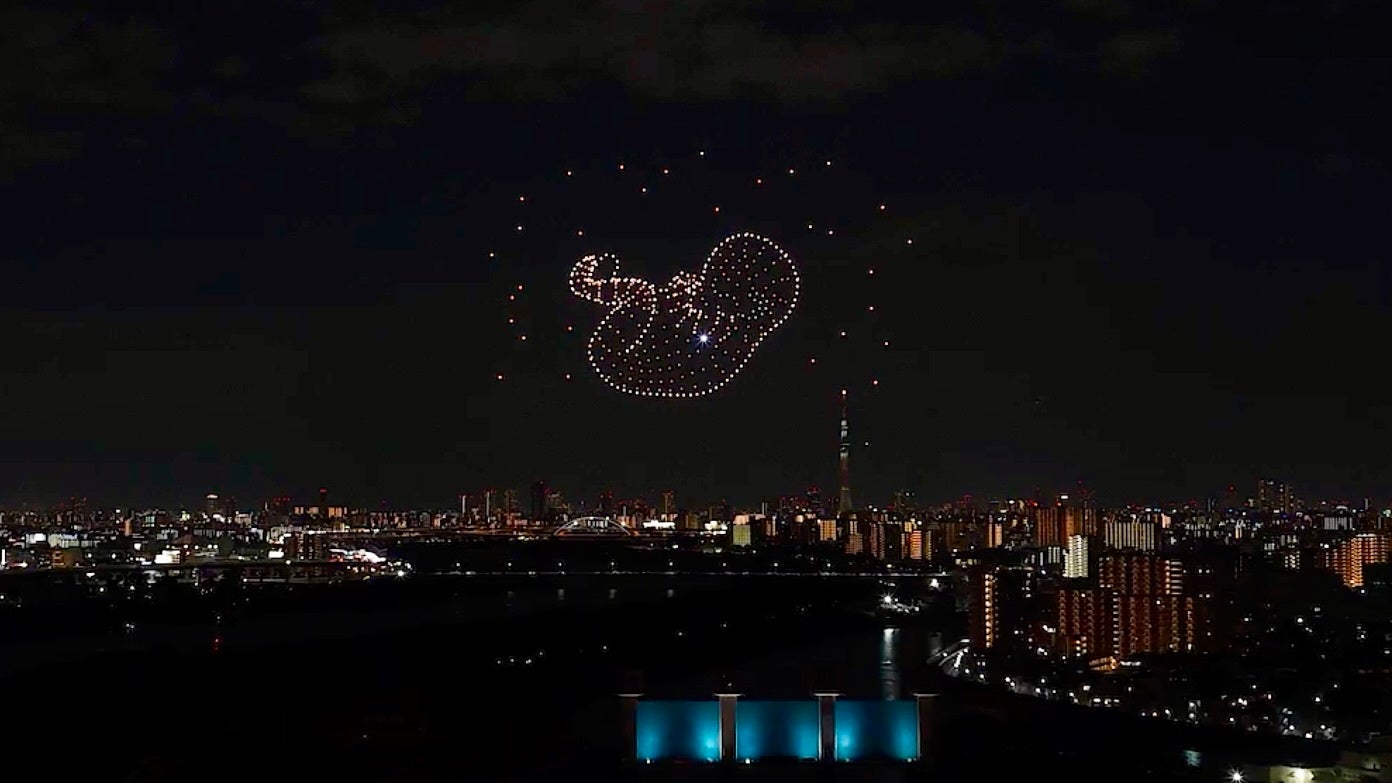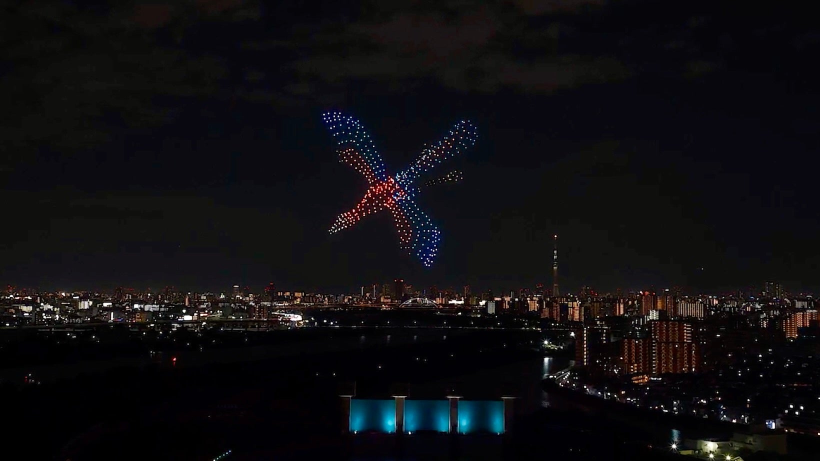 レッドクリフ、北区花火会オープニングで「生命の進歩」をテーマに500機のドローンショーを実施