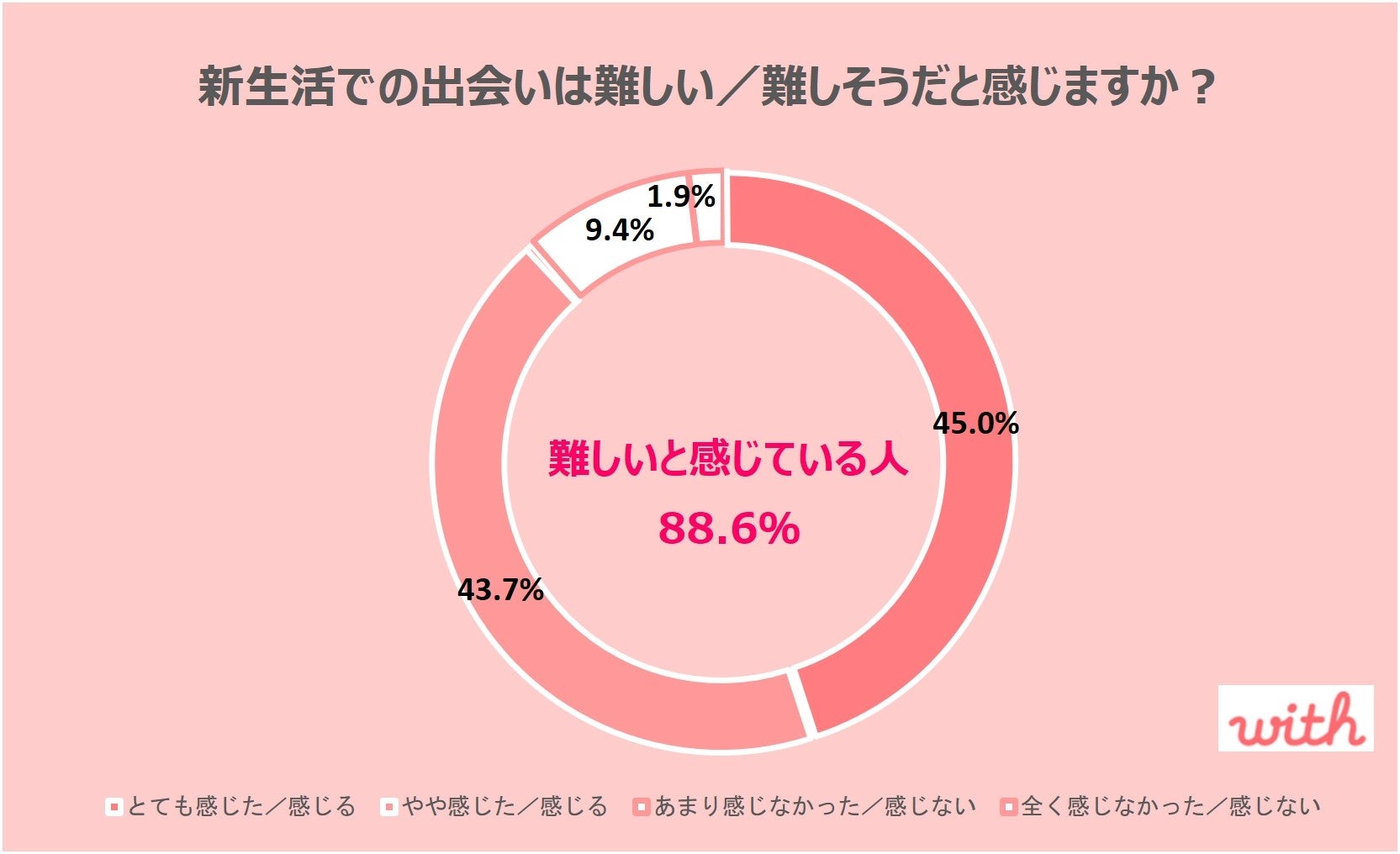 マッチングアプリ「with」「Omiai」の運営統括を行う株式会社エニトグループ(本社:東京都渋谷区、代表取締役グループCEO:野辺 一也、以下:エニトグループ)は、20代の「with」のユーザーを対象に新生活での出会いに関する意識調査を実施しました。