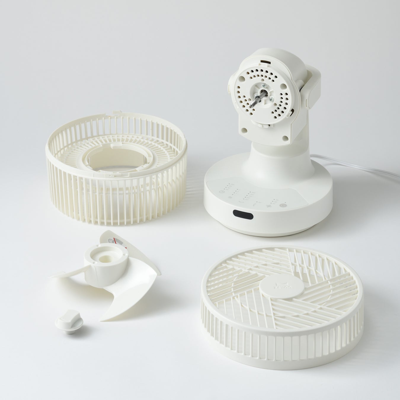 コンパクトなフォルムで設置場所を選ばず、省スペース設計を実現しました。さらに、前後のガードと羽根は工具不要で簡単に取り外しができ、水洗いにも対応しているため、毎日使用しても大丈夫!いつでも清潔にお使いいただけます。