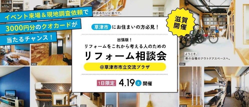 全国で累計15万件以上のリフォーム・リノベーション工事を手がける株式会社アートリフォーム(本社:大阪府吹田市、代表者:代表取締役社長 大本哲也、以下「アートリフォーム」)は、2025年4月19日(土)草津市立市民交流プラザにて【出張版】リフォーム相談会を開催致します。