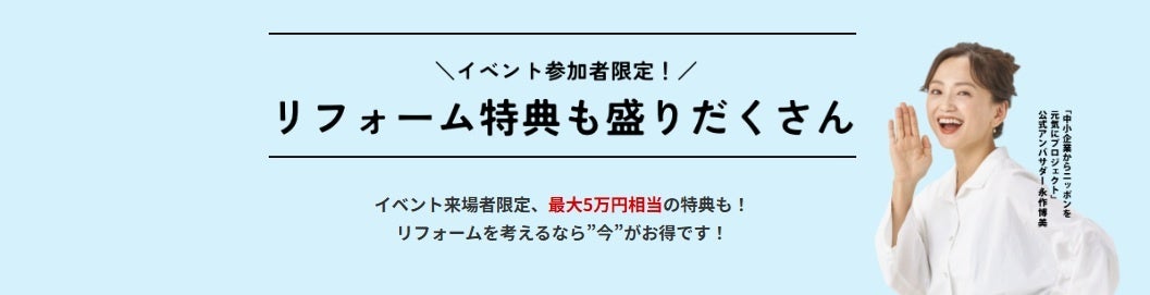 当社は、「暮らしにアートリフォームを 人生にアートリフォームを」というミッションのもと創業から70年間、住宅のリフォームやリノベーションによって、豊かな暮らしと人生を提供しております。一方で、リフォームやリノベーションを行うことは、日本においてはまだまだハードルが高く、気軽に行えるものではありません。リフォームのハードルを下げ、服のコーディネートや家具の交換と同じような感覚でリフォームが行われるようにするためには、積極的に施工事例やリフォームのノウハウを公開し、『暮らしの質の向上』の手段としてリフォームの価値を広く伝えることが必要です。そうすることが、ミッションの実現につながると考え、この度イベントを開催する運びとなりました。