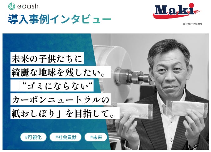 マキ商会、e-dashを活用して製造過程のCO2排出量を可視化し、カーボンニュートラルの紙おしぼりを開発・販売。