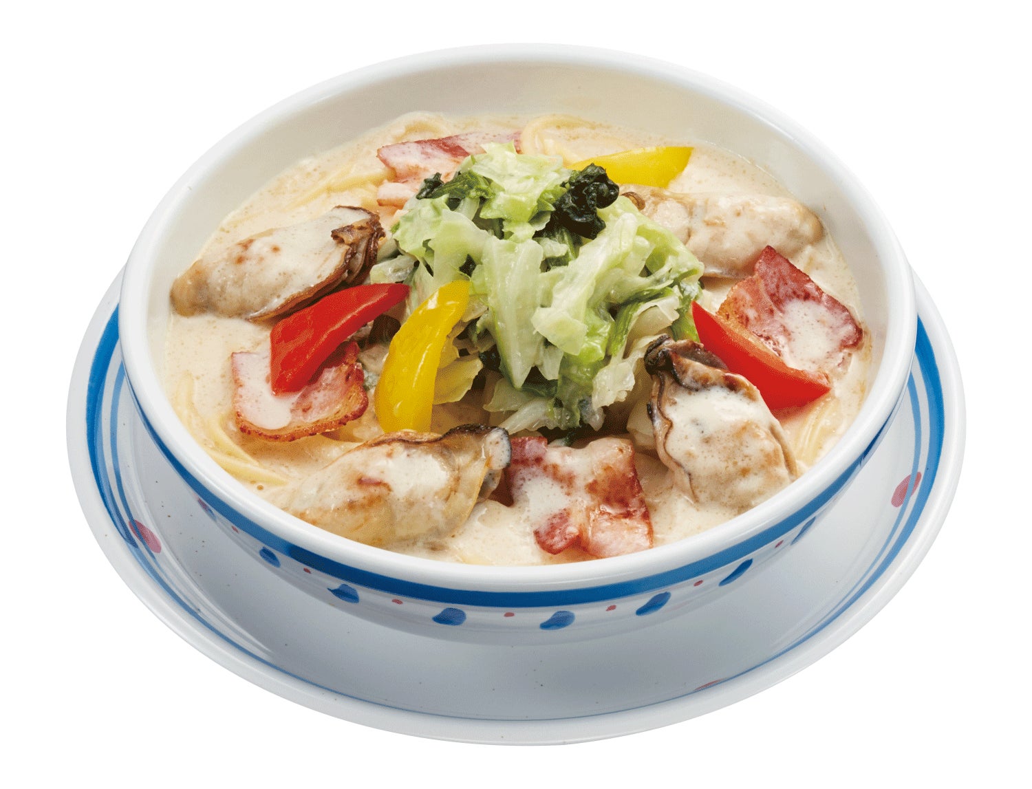 - 播磨灘産(はりまなださん)牡蠣(かき)とベーコン・たっぷり野菜のクリームスープパスタ 1,290円(税込1,419円)