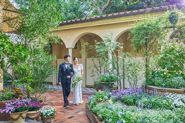 おふたりのために開かれた四季の花々が咲き誇る邸宅と、