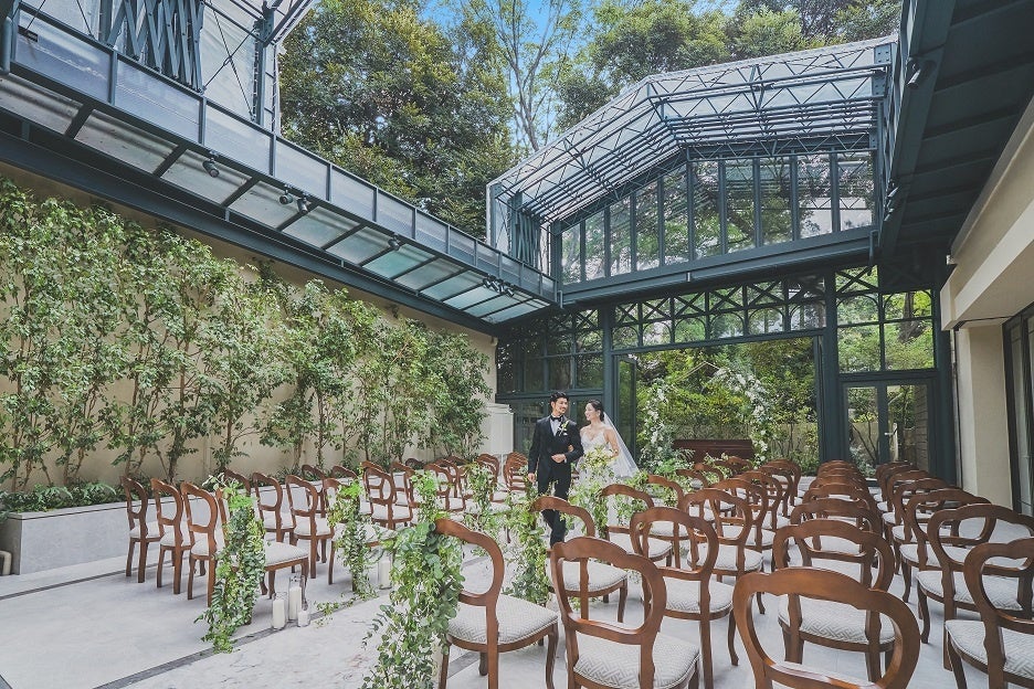 代官山という都心にあるとは思えないほど、緑豊かなガーデンチャペルは「リストランテASO」ならでは。天気の良い日は開閉式の天井を開け放てば、より自然を感じることができます。木々の緑とやさしい光に包まれたガーデンチャペルで、おふたりのために集まった大切なゲストの方々との理想のウエディングが叶います。