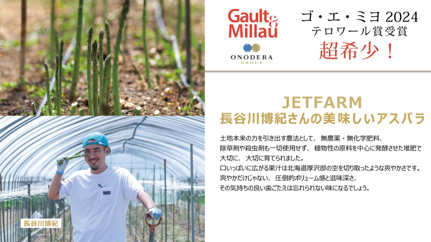 ゴ・エ・ミヨ2024受賞者「JETFARM」の北海道産アスパラガスを使用首都圏の職域食堂・社員食堂など、期間限定でメニューの提供開始