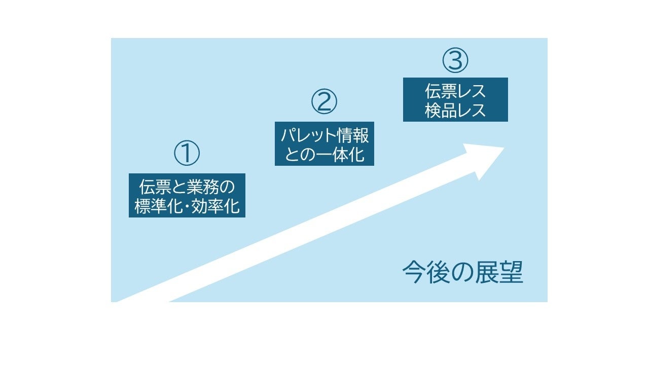 伝票レス・検品レスの実現 将来的には紙伝票そのものをなくし(完全電子化)、他社システムとの連携・出荷データ(ASN)等を活用した検品レス体制の構築を見据えています。