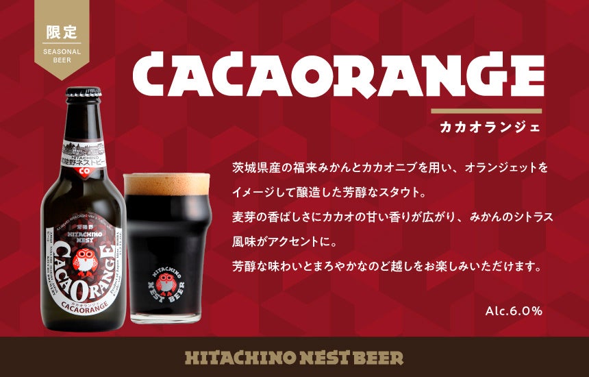 茨城県産の福来みかんと、華やかに香るカカオニブを使用した芳醇なスタウト「常陸野ネストビール カカオランジェ」数量限定で発売