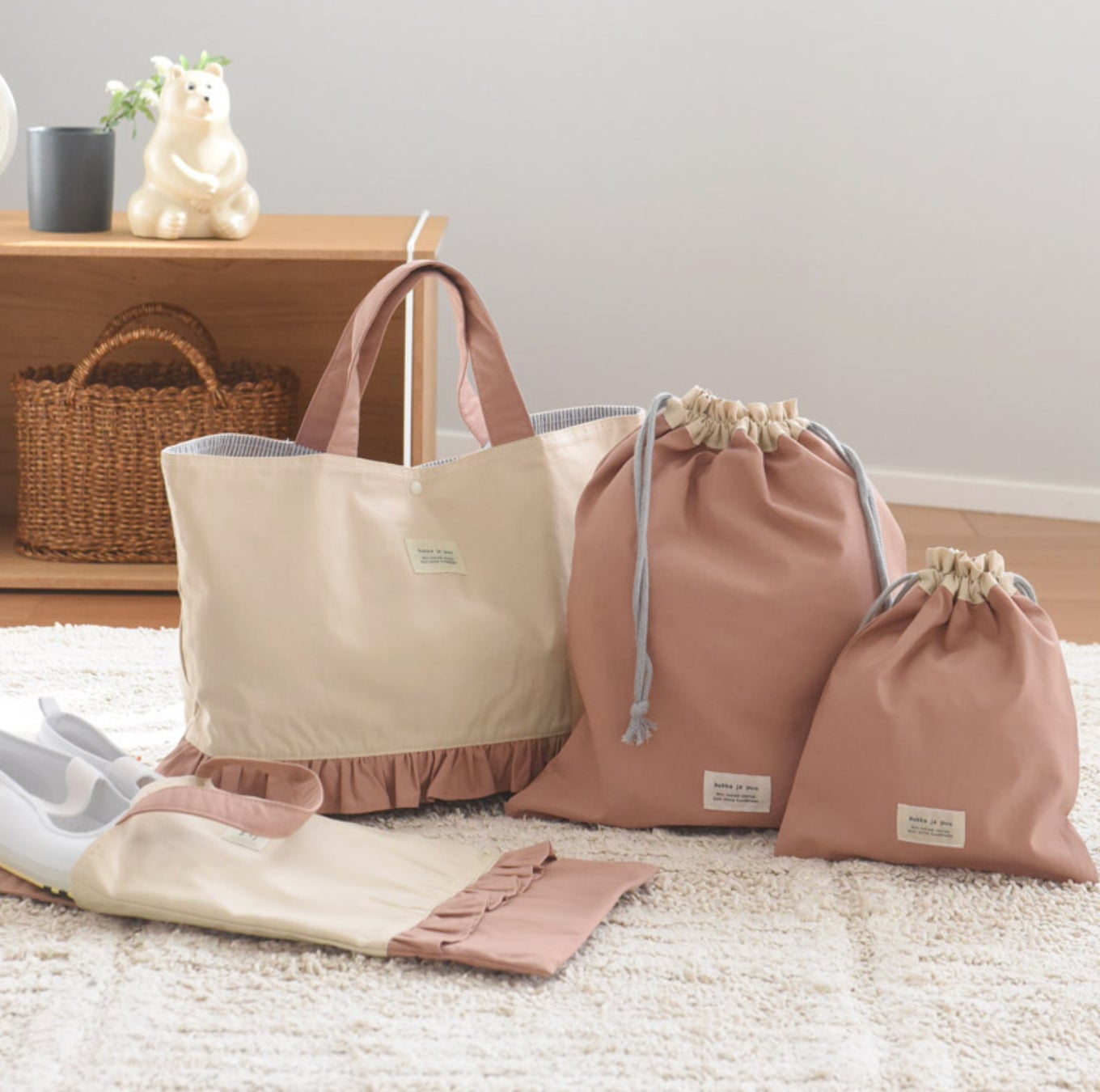 シリーズでも主力の商品は、レッスンバッグ、シューズバッグ、巾着大(体操着入れ)、巾着小(ランチョン入れ)の4アイテム。この4点は「まず揃えたいセット」としての販売も行っています。