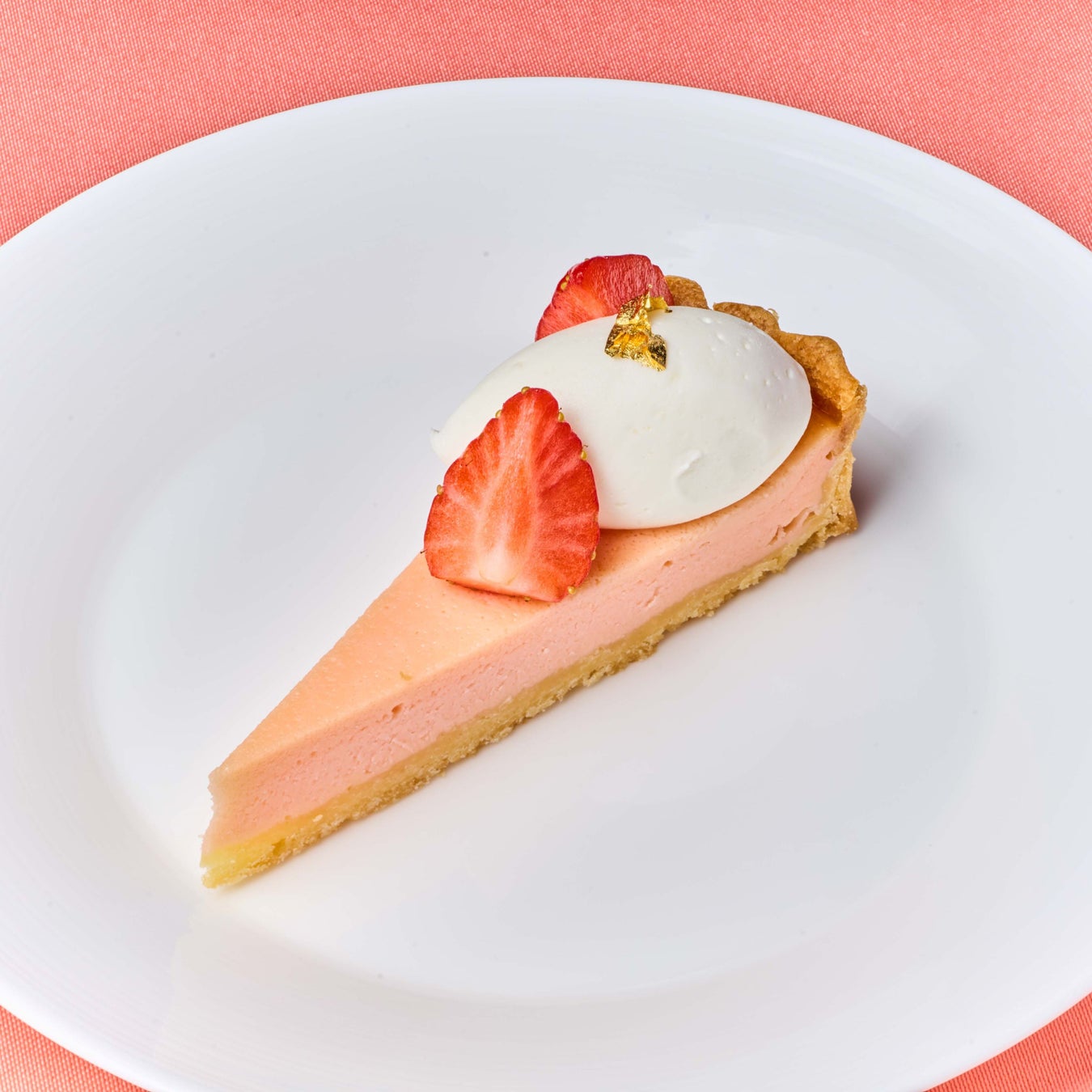 つやっと輝くドーム型のスイーツ「ショコラルージュ」はショコラサブレに、サクッと軽いジェノワーズ生地を重ね、いちごの香り高いジュレ、ホワイトチョコレートムースをとじ込めました。ほんのりピンクに色づいた「タルトフレーズフロマージュ」は、くちどけなめらかなチーズケーキにいちごの華やかな風味が相まって後をひくおいしさです。