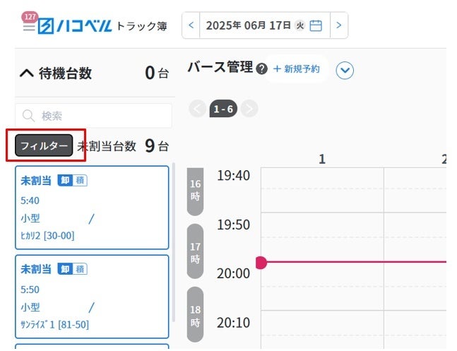 「トラック簿」の未割当エリアの上部に「フィルター」というボタンが追加されました。こちらのボタンから、任意の条件での絞り込み、並べ替えができます。特定の条件のみで絞り込みや並べ替えを行うだけでなく、複数条件をかけ合わせての絞り込みと並べ替えも可能です。