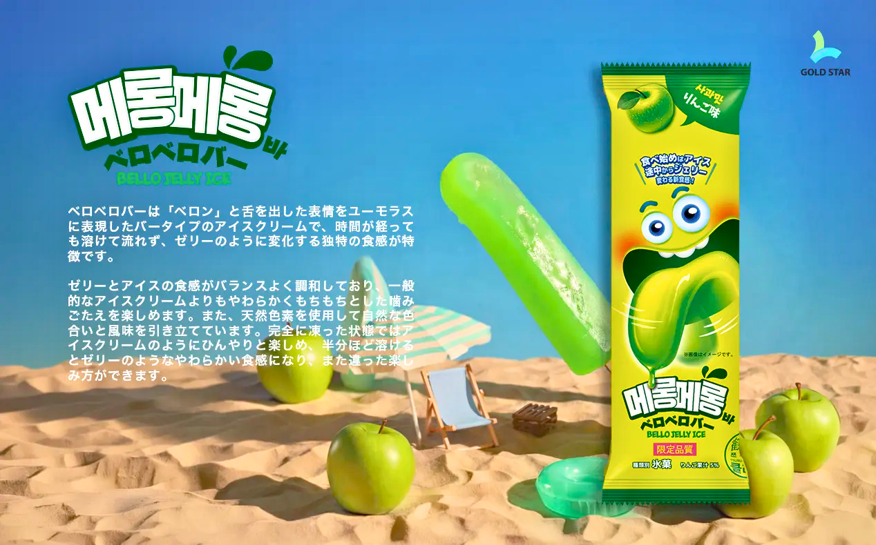本イベントで紹介した「ベロベロバー」は、舌(ベロ)型のユニークな形状と、外側はシャリッと、内側はなめることでゼリー状に変化する新感覚の食体験が特徴のアイスバーです。ポップなビジュアルと直感的に楽しめるコンセプトにより、思わず試したくなる“体験型スイーツ”として注目を集めています。