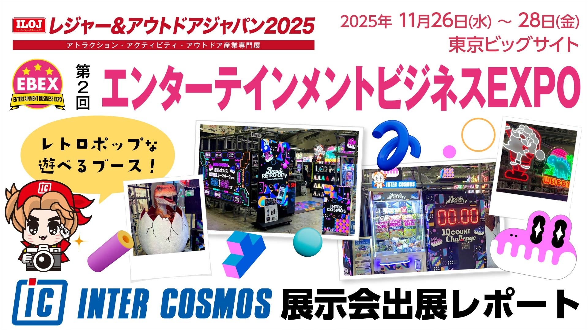 【出展レポート】『第2回 エンターテインメントビジネスEXPO』インターコスモスが出展ブースを大公開!!80年代レトロ×最新デジタル演出で“遊べるブース”を演出