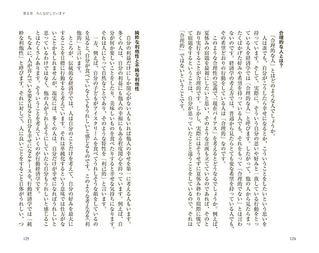 本書は、そのときの講義をもとにつくられたもので、若い世代を念頭に、行動経済学の考え方とその応用例を解説しています。できるだけ整理した形で、しかもライブ感を持った本になっていると思います。