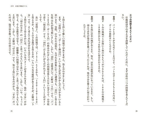合理的な人とは?/純粋な利他性と不純な利他性/ヒューリスティックス/社会的選好と社会規範/社会規範と相対所得仮説/「自由放任」の考え方と行動経済学/社会規範についての研究/ボトルネックはどこにあったのか?/社会規範とコミットメントは有効な手段/限定合理性と数当てゲーム/フレーミング効果の事例/代表性ヒューリスティックと「リンダ問題」/あなたはどちらだと思いますか?/利用可能性ヒューリスティック/私たちの判断は「アンカー」に影響される/最初に見せる数字がポイントになる/まったく関係ない数字にも影響される