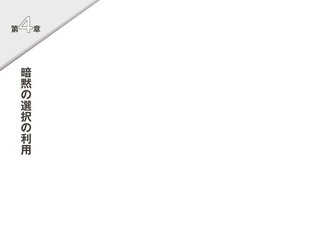 第4章では、デフォルトを利用した例を紹介します。私たちは、周囲の人がどのような行動をしているかという社会規範の影響を大きく受けます。そのような社会規範の影響について第5章で解説します。