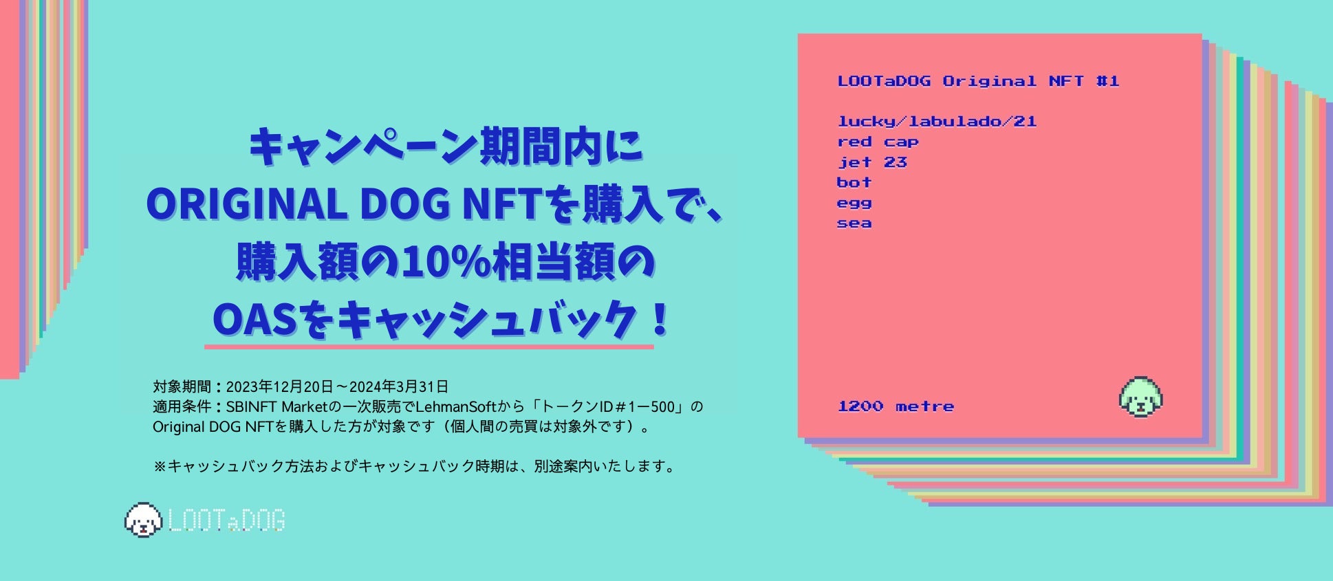 キャンペーン期間内にOriginal DOG NFTを購入で、購入額の10%相当額のOASをキャッシュバック!