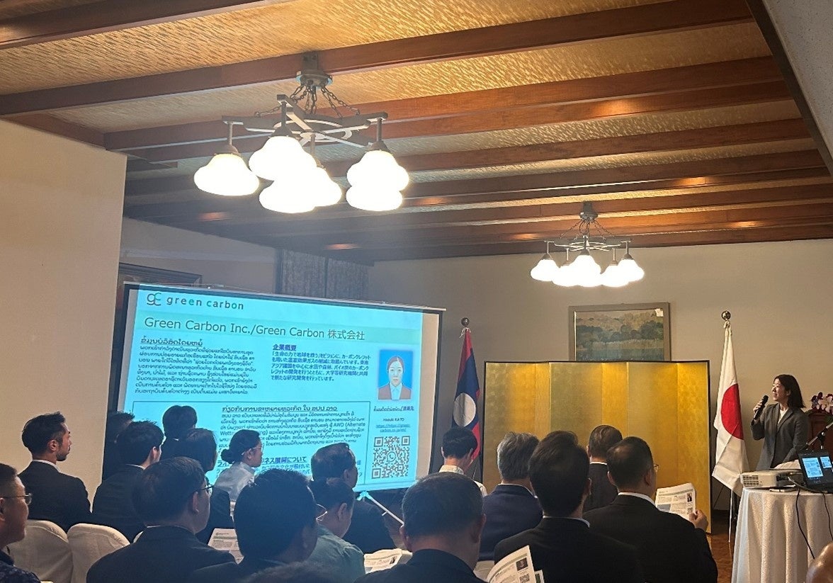 Green Carbon株式会社は、JETRO主催「ラオス脱炭素ソリューション・ビジネス・ミッション」に参加し、日本大使館主催のネットワーク会合のピッチに登壇