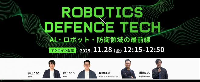 株式会社Elithは、2025年11月28日(金)に、AI・ロボティクス・防衛領域に特化したウェビナー「Robotics x Defense Tech」を開催します。