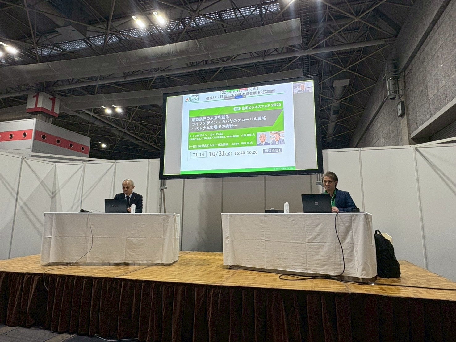 10月31日(金)にはライフデザイン・カバヤ(株)常務執行役員である山岡嘉彦 氏とJGBA代表理事である田島亮が「建築業界の未来を創る ライフデザイン・カバヤのグローバル戦略~ベトナム市場での挑戦~」をテーマにトークセッション型でお届けした講演会も開催。沢山の方々にご参加いただきました。