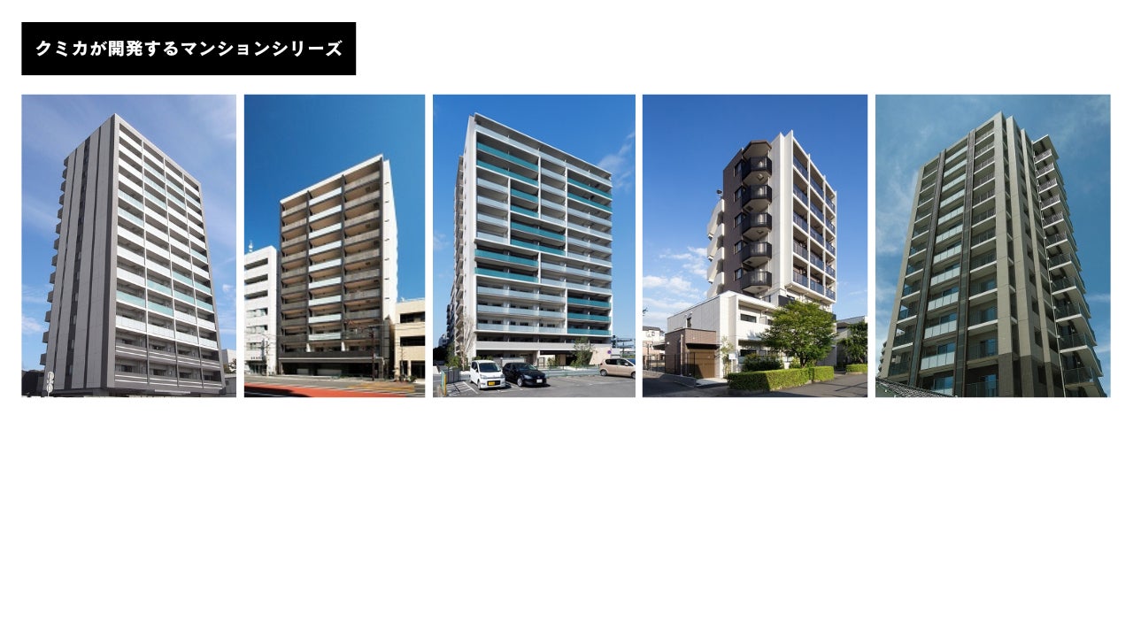 株式会社クミカは「モノづくり」の会社です。分譲マンションの実績では今年で 31 年目を迎え、ノウハウを生かした開発・施工・アフターサービスを提供いたします。積み上げてきた確かな建築技術と品質が当社の誇りであり、安心・満足・信頼していただけるモノづくりに力を結集してきました。また、当社の競合優位性の一つとして、自社協力会を構成し、コストコントロールと品質管理を積み重ねることで、お客様に上質な暮らしを低コストで提供できるのが当社の強みです。