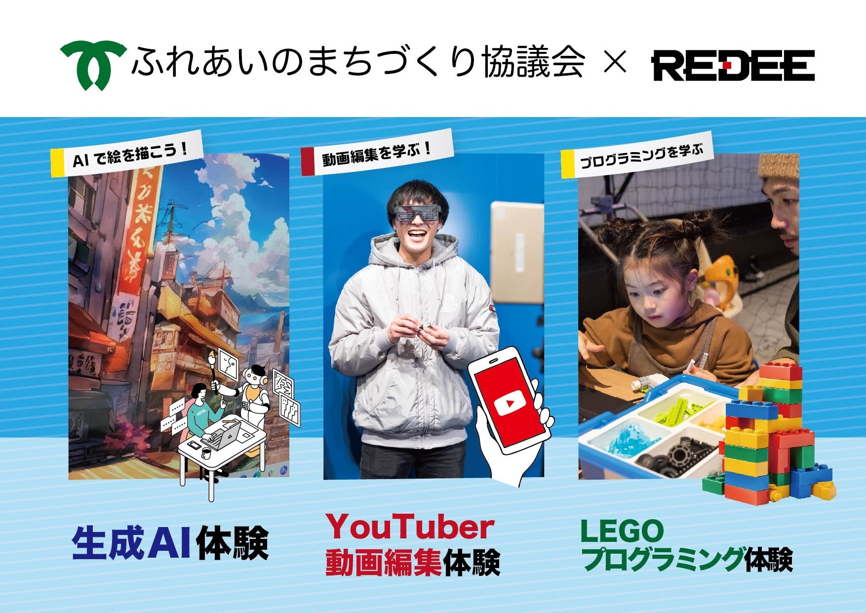 神戸市立地域福祉センター(指定管理者:ふれあいのまちづくり協議会)とREDEE株式会社は、これからも引き続き継続したイベントとして「AI生成体験」「LEGOプログラミング体験」「YouTuber体験」などデジタルに纏わる体験会を開催いたします。