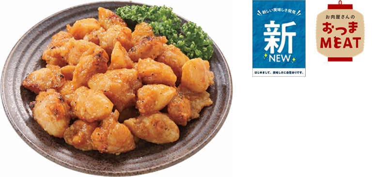 「おつまみ」と、お肉を意味する「MEAT(ミート)」の2つの言葉を組み合わせました。お酒にピッタリな味付けの「おつまみ」に加え、夕飯やお弁当の「おかず」にもなる当社オリジナル商品です。精肉コーナーまたは惣菜コーナーにて販売しております。