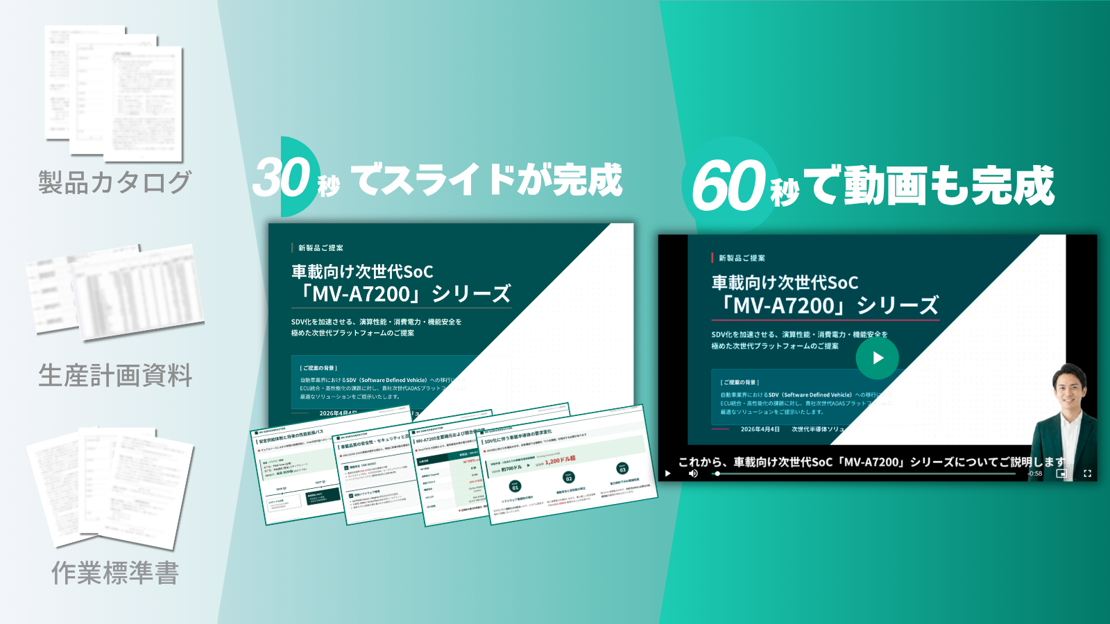 ■既存マニュアル・手順書からスライドと動画を一気通貫で生成。製造業向けに新搭載