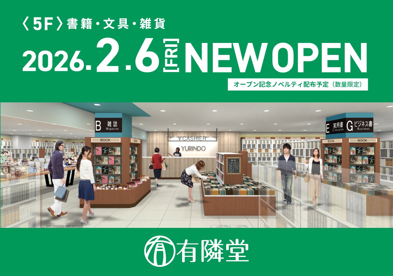 株式会社有隣堂(本社:神奈川県横浜市/代表取締役 社長執行役員:松信 健太郎)は、2026年2月6日(金)、JR茅ケ崎駅直結の商業施設「ラスカ茅ヶ崎」5階に、「有隣堂 ラスカ茅ヶ崎店」をオープンいたします。