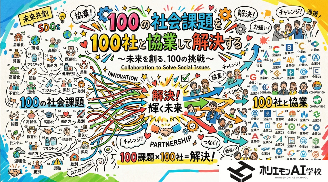 ホリエモンAI学校、「100人の経営者と100個のAI事業を作り100の社会課題を解決するプロジェクト」提供開始