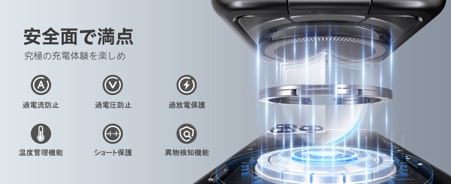 ワイヤレス充電しながら本体にも同時に蓄電でき、朝起きたら全デバイスがフル充電という理想の体験を実現。