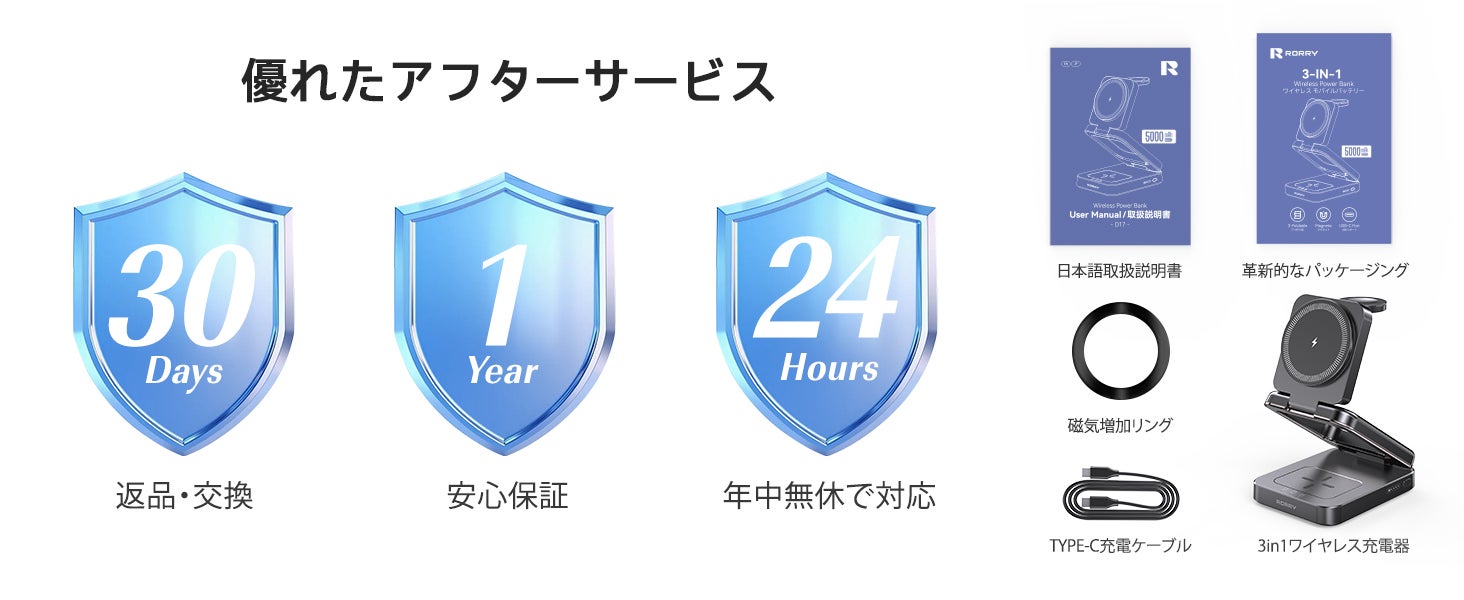 【RORRY】ブラックフライデー破格!今なら 4,114円・史上最安値|5000mAh×3in1折りたたみ式ワイヤレス充電スタンドD17が登場