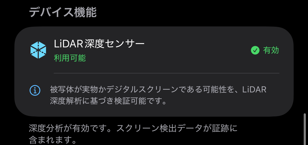 撮影した対象が「実物」か「スクリーン」かを判定可能に。証跡能力が一段と向上。AIによるディープフェイク問題に対応。専用LiDAR深度センシングとオープン標準の暗号学的プロトコルプロダクトとして世界初。
