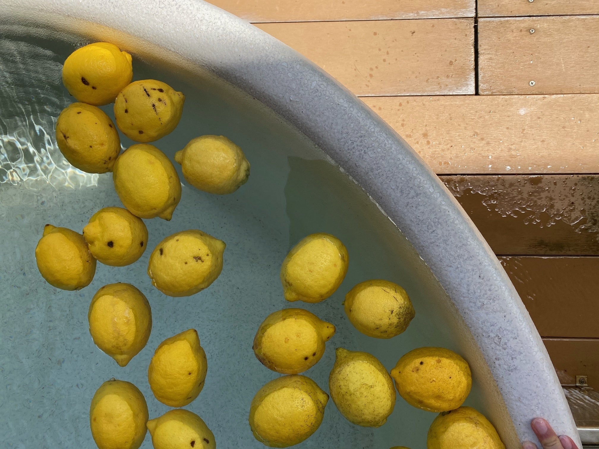 湘南潮彩レモンの湯では、色鮮やかなレモンの湯面からから立ち上る爽やかな香りとレモンから出る成分で、疲労回復効果や、血行促進効果が期待されます。