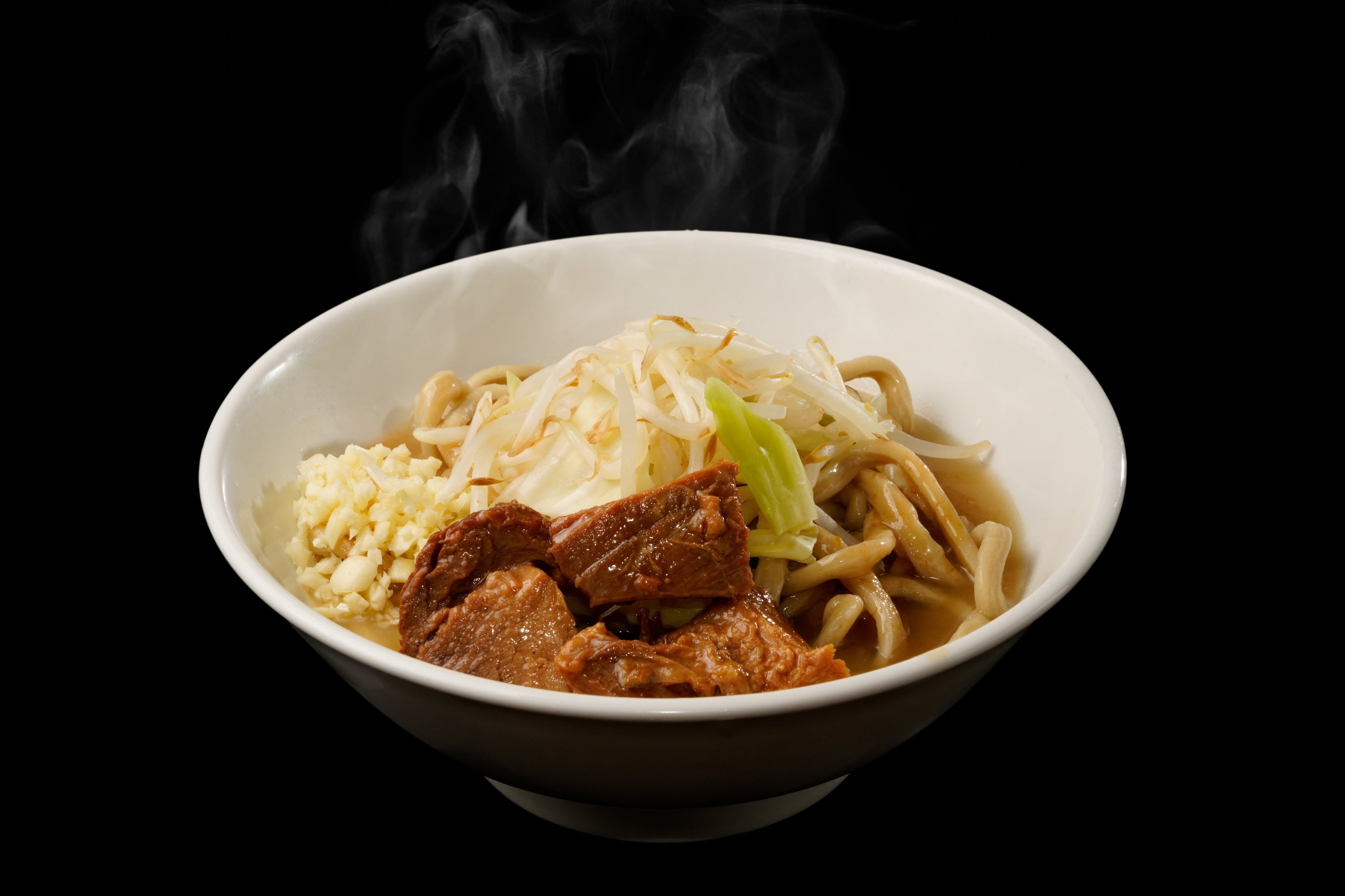 麺の太さ、硬さともに史上最強クラスの「MEN YRAD FIGHT」。他に類を見ないハードコアな一杯を求め、熱狂的なファンたちは日々行列を成す。箸を持つ手の握力と、ボキボキとした食感の麺を嚙み砕く咀嚼力を酷使したその先には、未体験の満足感が待っている。