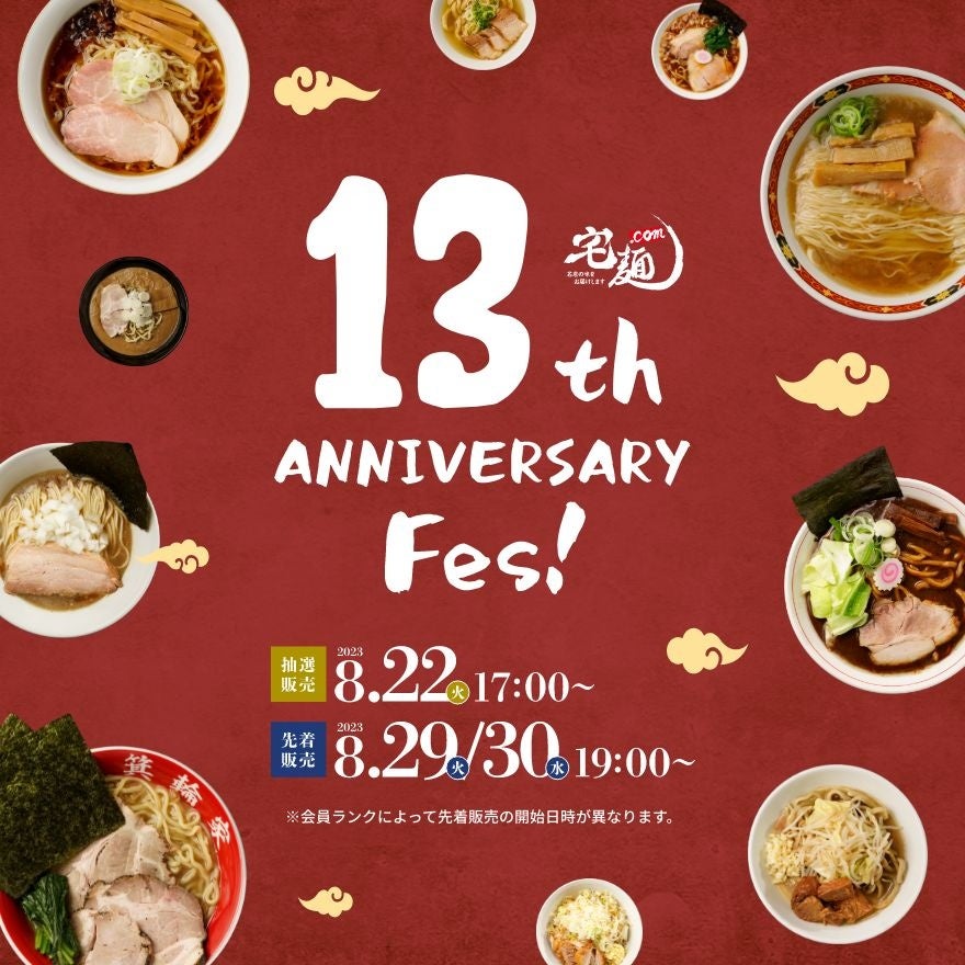 現在公開されている参加ラーメン店のうち、「ちばから」を除く9店舗が「宅麺13周年祭」をきっかけに新たにパートナー店舗となりました。日本一の煮干しラーメンとも称される「煮干中華ソバ イチカワ」や、近年トレンドの超極太手打ち麺「日陰」、埼玉県の東岩槻で連日大行列を作っている「オランダ軒」など、業界でも超が付くほどの有名店が集まり、13周年を盛り上げてくれます。今回用意した商品はすべて新商品で、中にはラーメンの冷凍販売自体が初めてというお店もあります。全ての参加ラーメン店と販売商品については、「販売商品詳細」からご確認いただけます。普段は行列に並ばなければ食べられない名店の味を、この機会にぜひお楽しみください。