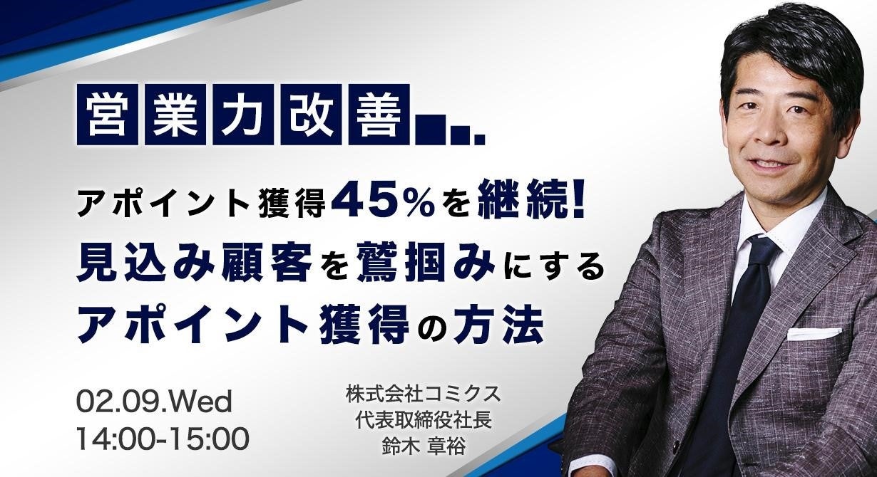 【無料ウェビナー】アポイント獲得45%を実現する見込み顧客を鷲掴みにするアポイント獲得の達人の勉強会