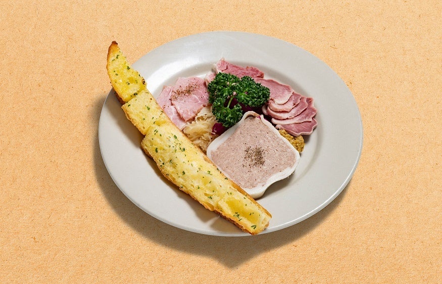 ドイツを代表する豚肉料理4種と人気のガーリックトーストを盛り合わせました。