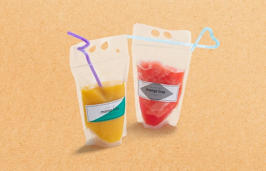 スイカのフローズンジュースを期間限定でかわいいビニールパックでご提供。フローズンマンゴジュースは横浜店限定レシピです!