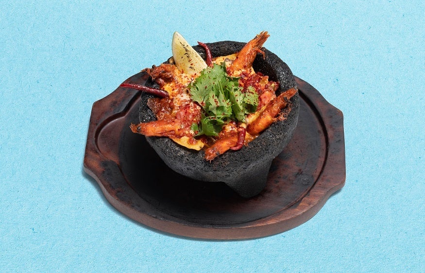 旨味たっぷりのソフトシェルシュリンプを生ハバネロのソースでじっくり煮込み、上からたっぷりのチーズをかけてグツグツに仕上げた、メキシコを存分に感じられる一品。